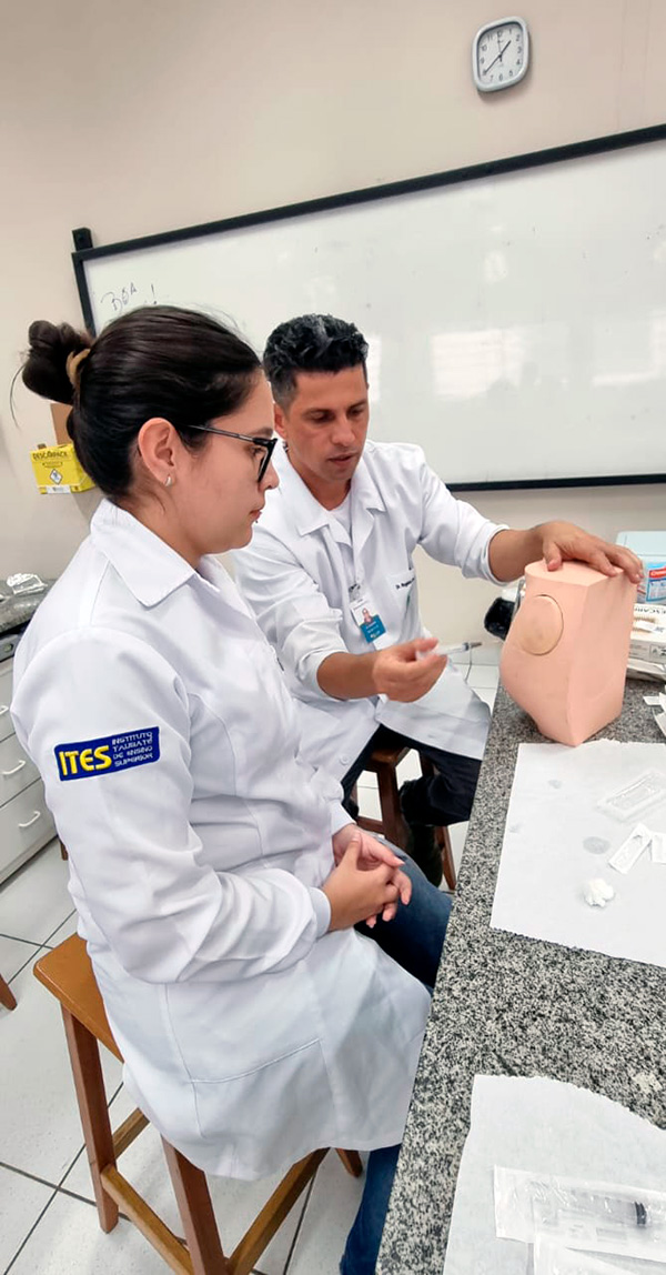 Em parceria com a rede Drogarias Campeã, foi oferecido no ITES, em 14 de dezembro de 2023, o curso teórico-prático de aplicação de injetáveis para os alunos formandos, como uma oportunidade de aprimoramento antes da chegada ao mercado de trabalho. O curso foi ministrado pelo farmacêutico Rogério Píetchaki com carga horária de 5 horas. Agradecemos a disponibilidade do Rogério e a parceria das Drogarias Campeã para a realização dessa importante capacitação aos nossos alunos.